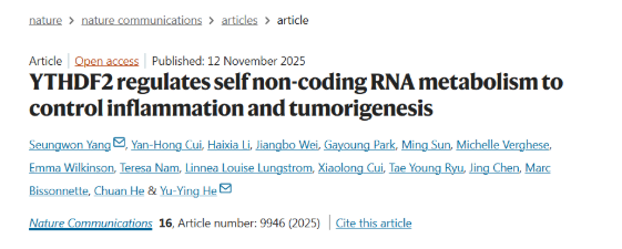 RNA的N6-甲基腺苷(m⁶A)修饰是真核生物中普遍的内部RNA化学修饰,被誉为“表观转录组学"的核心调控层。过去十年的大量研究揭示了m⁶A在信使RNA(mRNA)的代谢、剪接、翻译和降解中扮演关键角色,并通过其“阅读蛋白"(如YTHDF家族)执行功能,进而广泛影响细胞生理与病理过程,包括肿瘤发生。YTHDF2是其中重要的阅读蛋白,其主要功能是识别m⁶A修饰并促进靶标mRNA的降解。