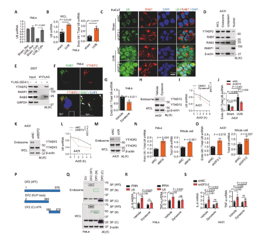 在亚细胞定位层面,采用内体分离、免疫荧光和FISH技术,旨在揭示YTHDF2与U6通过SIDT2转运至内体并发生功能互作。