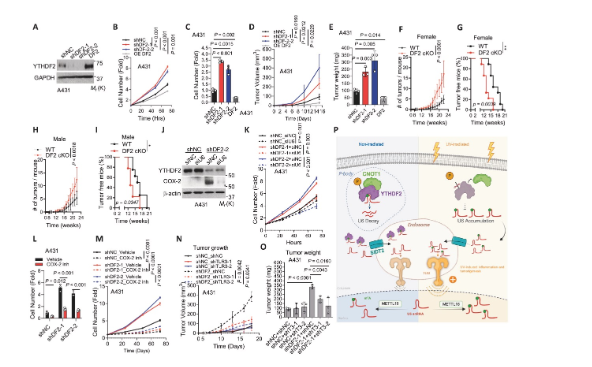 在动物模型与临床关联层面,构建皮肤特异性YTHDF2敲除小鼠并进行UVB致癌实验,旨在证实YTHDF2在活体水平抑制炎症与肿瘤发生。通过分析人类皮肤癌组织芯片与自身免疫病数据库,旨在阐明YTHDF2表达的临床相关性。